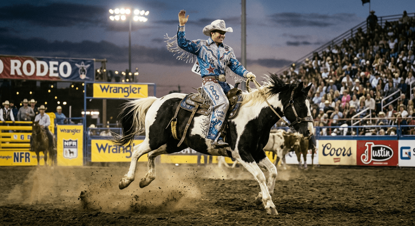 Riding out on a horse in a star-spangled rodeo.